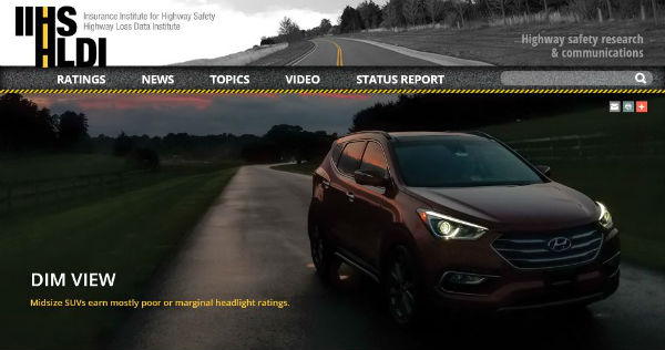 미국 고속도로안전보험협회(IHHS)는 차량의 헤드라이트가 야간 운전 시 교통 사고를 유발하는 요소로 판단하고 있다. 이에 차급별 헤드라이트 성능을 테스트해 그 결과를 공개해 왔다.
