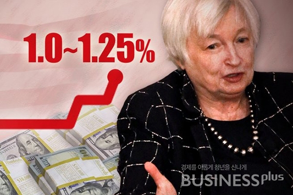 미국 연방준비제도(Fed)가 14일(현지시간) 정책금리를 인상했다. 도널드 트럼프 정부가 출범한 올해 들어 두 번째 금리 인상이다. 이로써 3월 0.75∼1.0%로 올랐던 미 기준금리는 3개월 만에 다시 1.0∼1.25%로 0.25%포인트 인상됐다. 이로써 미국과 한국의 기준금리(1.25%)는 동일해졌다.