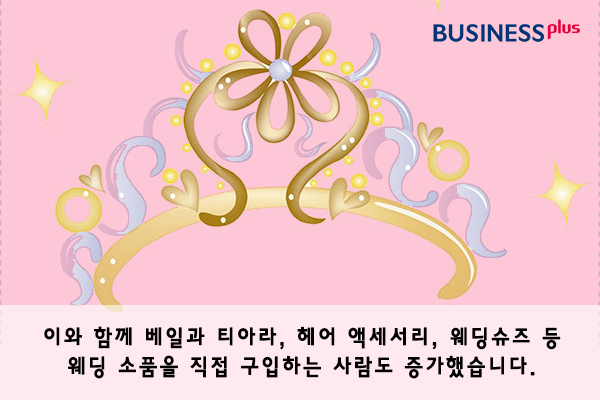 이와 함께 베일과 티아라, 헤어 액세서리, 웨딩슈즈 등 웨딩 소품을 직접 구입하는 사람도 증가했습니다.