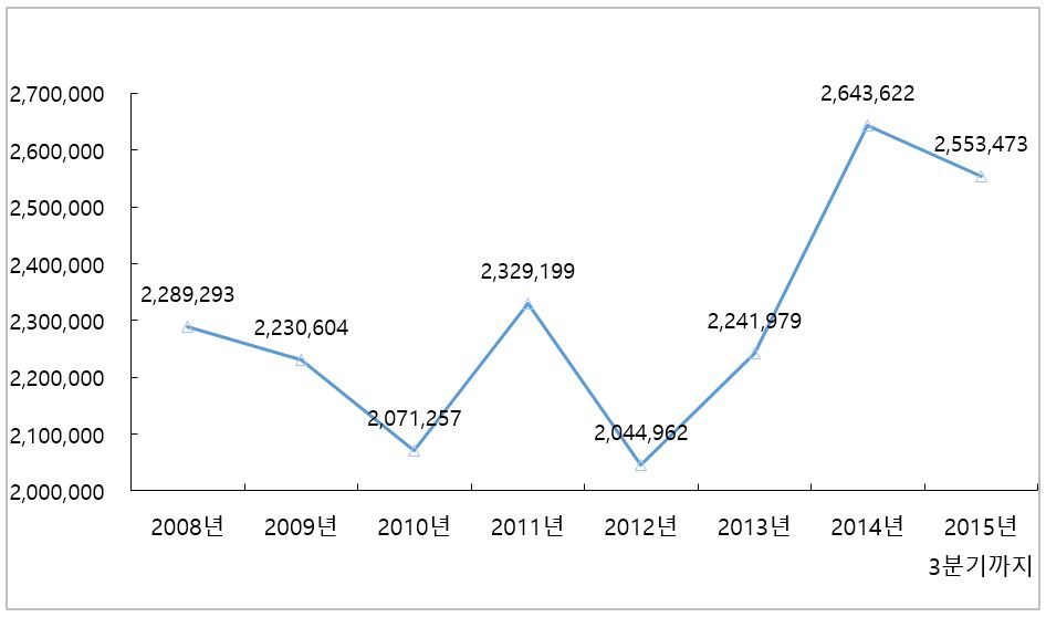 2015년 3분기까지 거래된 토지는 총 255만3473건으로 2014년의 264만3622건에 육박하는 것으로 확인됐다. 역대 최대치가 2014년(2006년부터 집계)인 점에 비춰보면 거래량 기준으로 2015년에 역대 최대치를 경신할 가능성이 매우 높다.