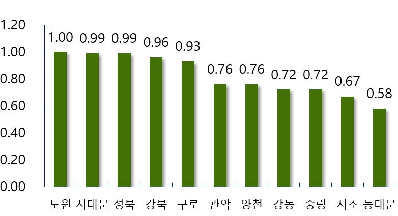 서울은 △노원(1.00%) △서대문(0.99%) △성북(0.99%) △강북(0.96%) △구로(0.93%) △관악(0.76%) △양천(0.76%) △강동(0.72%) 순으로 상승했다. 노원은 상계동 일대 주공아파트가 대폭 뛰었다. 주공1·4·6·9단지가 1000만원~3000만원가량 올랐다. 평가인식이 확산되며 소형 아파트 위주로 매매가격이 상승했다. 서대문은 저가 아파트 위주로 갭 메우기가 계속되고 있다. 홍제동 삼성래미안이 약 2000만원~5000만원, 남가좌동 남가좌삼성이 500만원~1500만원 올랐다. 성북은 실수요가 많은 신규 아파트 위주로 매수세가 많다. 길음동 길음뉴타운8단지(래미안)이 1500만원~3000만원 상승했다. 강북은 미아동 미아뉴타운두산위브가 1000만원~2000만원 올랐다.