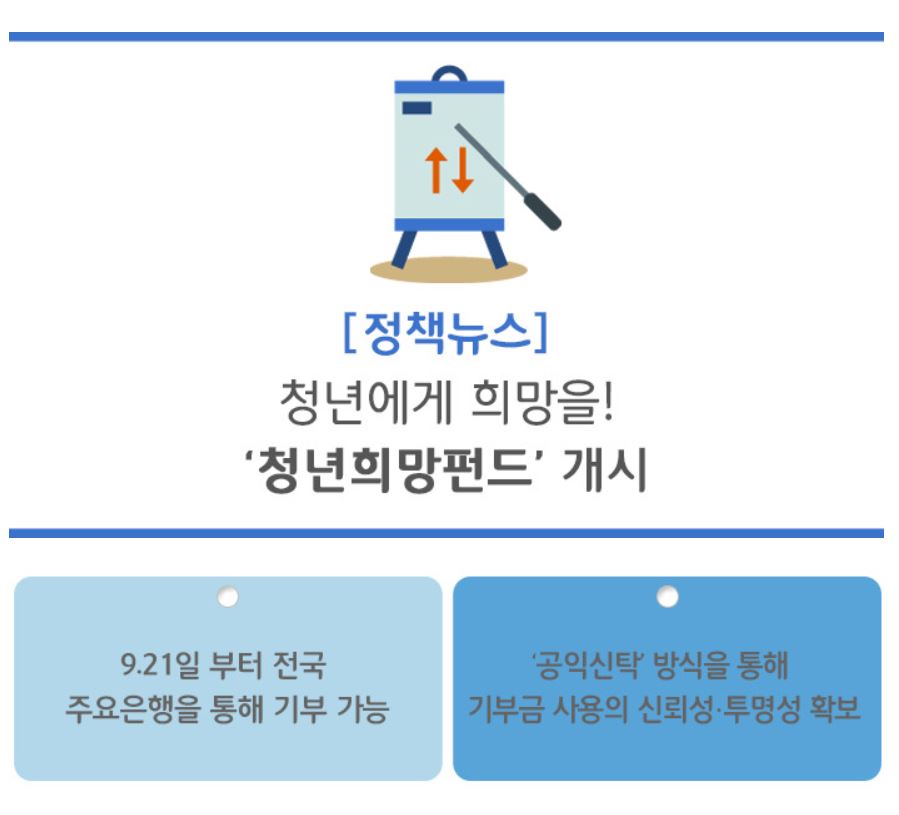 은행연합회에 따르면 KEB하나은행·신한은행·국민은행·우리은행·NH농협은행 등 5개 은행은 청년희망펀드 공익신탁을 공동 출시했다. 영업점에서는 KEB하나은행이 21일부터, 나머지 4개 은행은 22일부터 가입 신청을 받는다. 인터넷뱅킹으로는 KEB하나은행이 22일부터(옛 외환은행 고객은 24일), 나머지 은행은 30일부터 신청을 받는다.