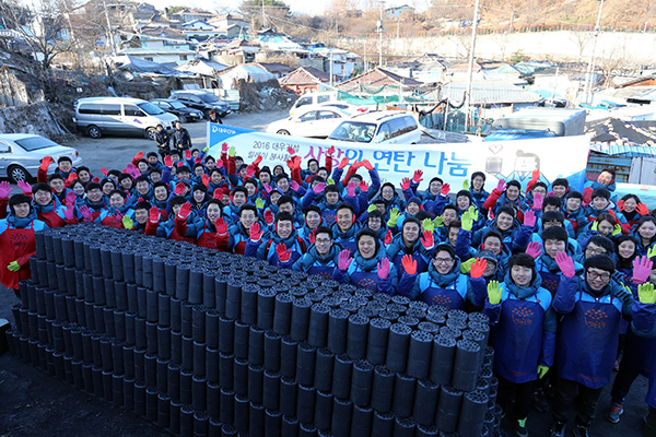 대우건설 2016년 신입사원 100명이 참석한 이날 봉사활동에서 대우건설은 밥상공동체복지재단 서울연탄은행을 통해 104마을 40가구에 연탄 4000장을 직접 배달했다.