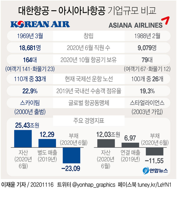 대한항공이 인수를 추진하는 아시아나항공은 내년 4월 초까지 고용 90% 이상을 유지해야 한다. 기간산업안정기금을 지원받았기 때문이다. 하지만 내년 상반기 대한항공과 통합 작업이 본격적으로 추진되면 인력 구조조정 문제가 최대 관심사로 부각될 전망이다.