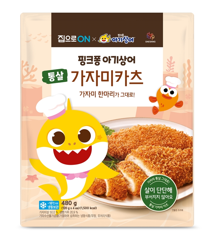 대상㈜의 온라인 전문 브랜드 '집으로ON'이 심해산 가자미를 넣어 만든 '핑크퐁 아기상어 가자미카츠'를 출시한다고 19일 밝혔다.