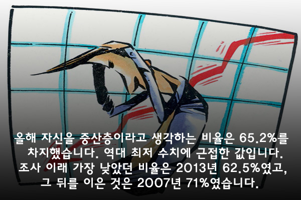 올해 자신을 중산층이라고 생각하는 비율은 65.2%를 차지했습니다.