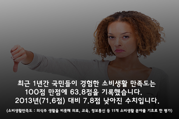 국민의 소비생활 만족 수준도 2년 전보다 하락했습니다.