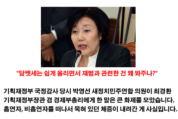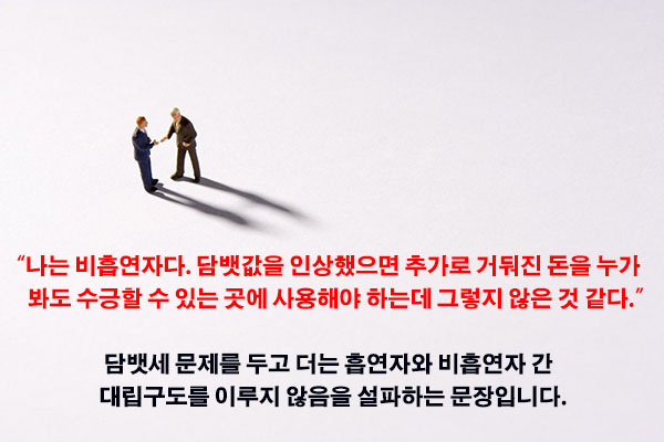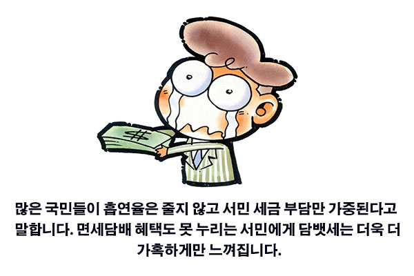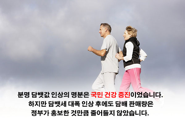 분명 담뱃값 인상의 명분은 '국민 건강 증진'이었습니다. 하지만 담뱃세 대폭 인상 후에도 담배 판매량은 정부가 선전한 것만큼 줄어들지 않았습니다.