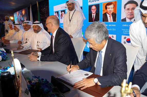 대우건설이 지난 13일 57억6000만 달러 규모의 알주르 정유공장 프로젝트(AZRP) 2·3번 패키지 공사의 계약을 쿠웨이트 현지에서 체결했다.