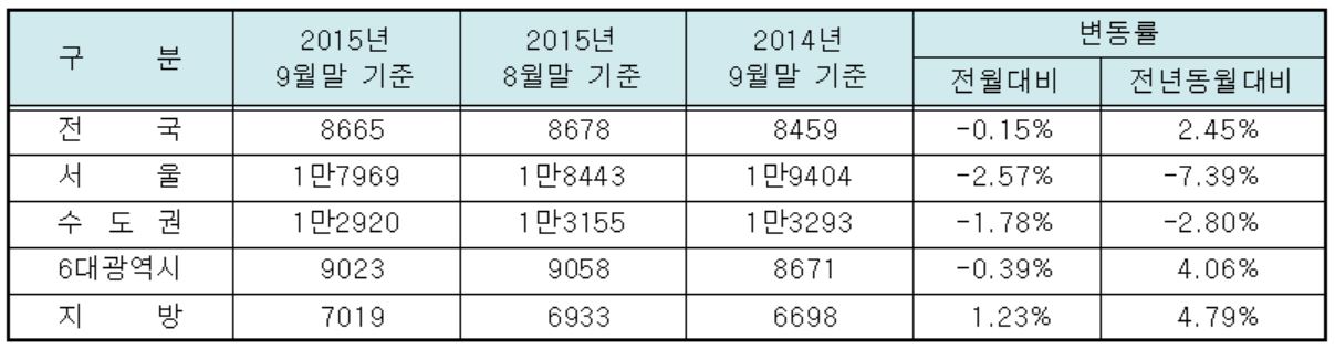 9월 말 기준 전국 아파트 평균 분양가격이 866만5000원인 것으로 나타났다.