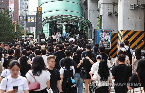 성수역의 퇴근시간대 일평균 승하차 인원은 2014년 8000여명에서 지난해 1만8000여명으로 두 배 이상 늘었다. 특히 3번 출입구에 인파가 집중된다.