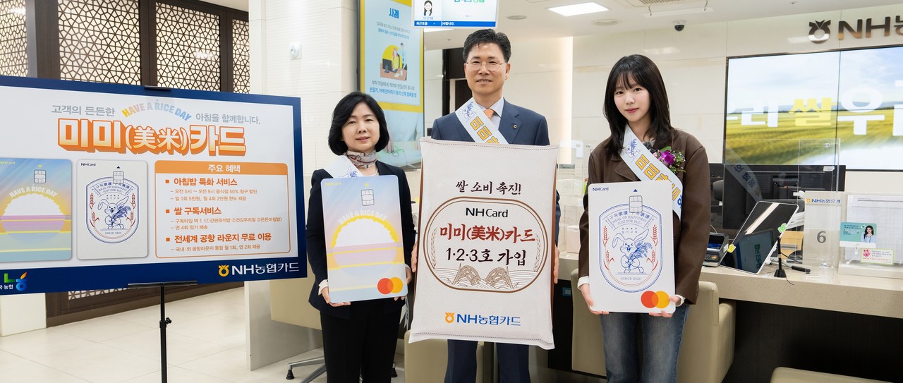 미미카드 출시를 기념해 NH농협은행 강태영 은행장, NH농협카드 이민경 사장, 모델 지예은이 함께 NH농협은행 본사에서 카드 발급행사와 임직원 대상 아침밥 증정행사를 진행했다. 특히 산불피해지역인 안동쌀로 지은 아침밥 증정행사가 큰 호응을 얻었다.