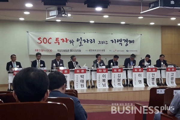 21일 오후 여의도 국회의원회관 제2 소회의실에서는 ‘SOC 투자와 일자리 그리고 지역경제’ 토론회가 진행됐다. 지역 경제가 활력을 잃고 고용 시장이 크게 위축된 상황에서 SOC 투자 확대에 대한 심도있는 논의가 필요하다는 데 정부와 학계, 언론, 업계 등이 의견을 모은 결과다.
