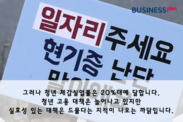 그러나 청년 체감실업률은 20%대에 달합니다. 청년 고용 대책은 늘어나고 있지만 실효성 있는 대책은 드물다는 지적이 나오는 까닭입니다.