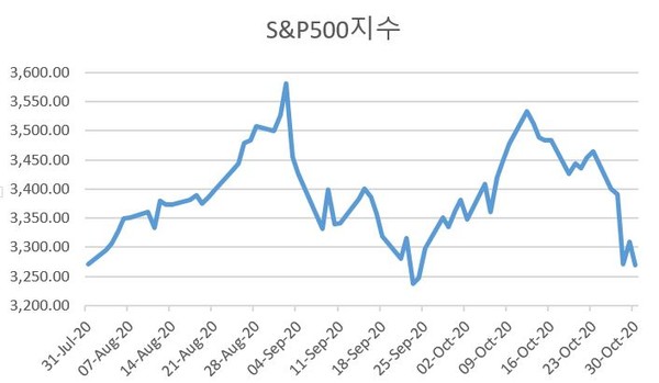 S&P500지수는 전날 뒤늦게 반등을 시도했지만, 그간의 낙폭을 만회하긴 역부족이었다. 지수는 전 거래일보다 1.2% 낮은 3269.96으로 10월을 마무리했다. 7월 31일 종가 3271.12을 불과 1.16포인트 밑돈다.