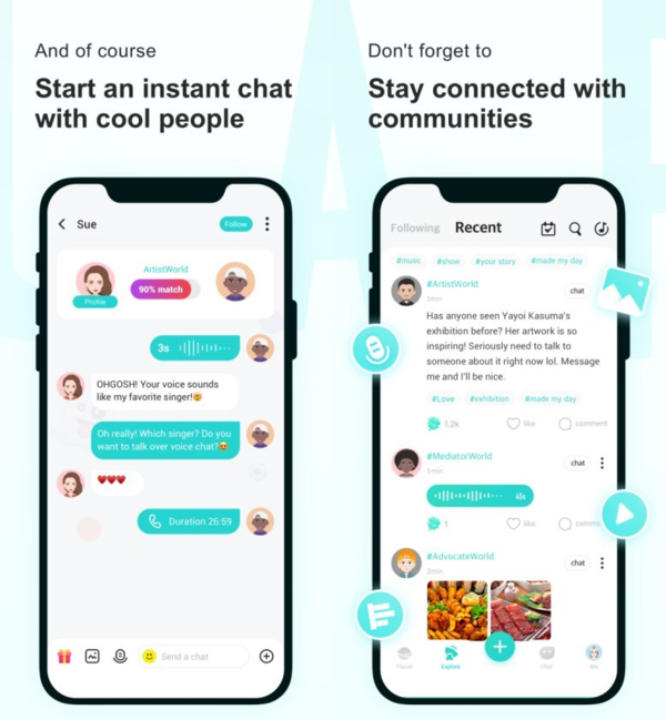 사용자는 상대방의 프로필을 보고 관심이 생기면 문자나 음성으로 대화를 신청할 수 있다. 또 여러 사람이 참가하는 단톡방을 만들거나 '광장'이라 불리는 공개 게시판에 사진이나 글을 올릴 수도 있다. 한 개의 앱 안에 데이팅 앱과 메신저, 소셜미디어가 모두 들어 있는 셈이다.