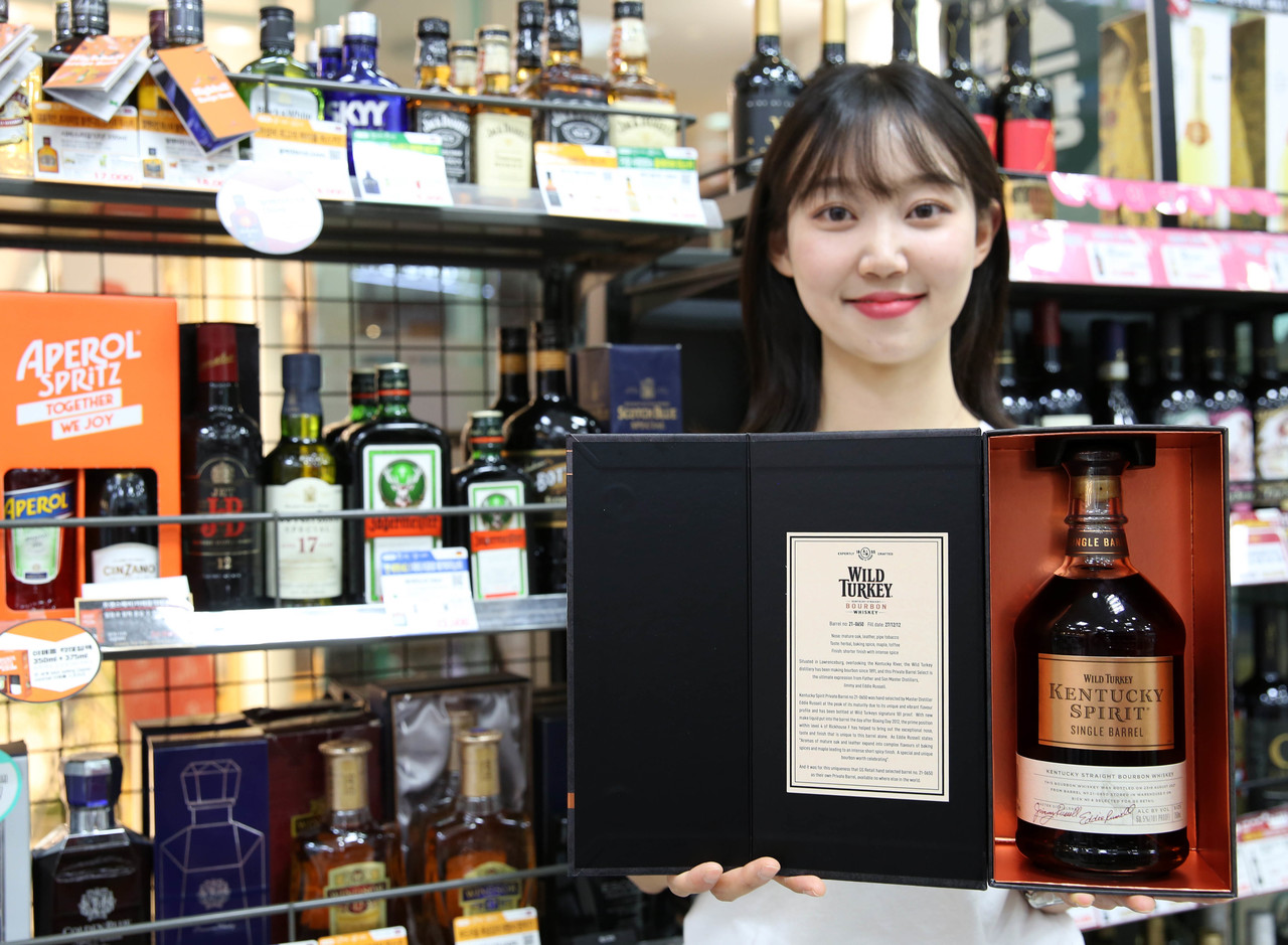 GS리테일이 와일드터키의 대표 상품인 '켄터키스피릿'의 GS리테일 한정판 상품 '켄터키스피릿 프라이빗배럴 GS리테일'을 22일 오후 2시부터 주류 스마트오더 플랫폼 와인25플러스를 통해 선보인다.
