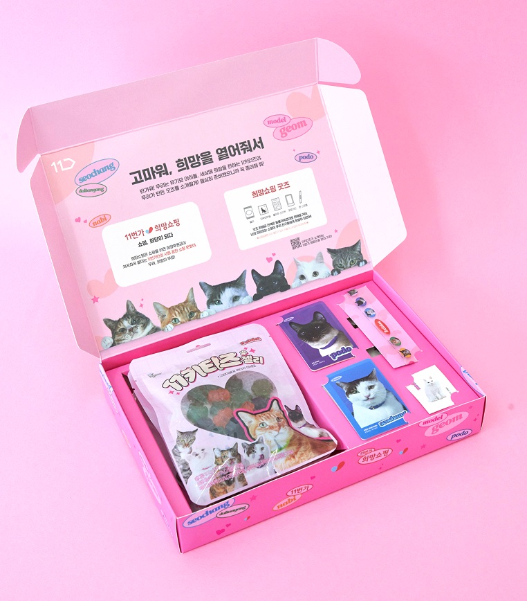 이에 11번가는 추가 물량을 마련 25일 오전 9시부터 2차 판매를 시작한다. 희망쇼핑 굿즈 패키지는 11키티즈 멤버들의 개성을 담은 굿즈들로 구성됐다.