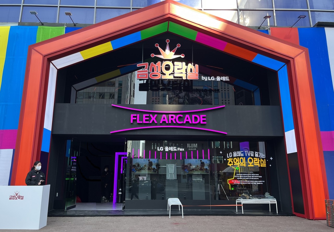 금성오락실 1층/2층에 있는 LG전자의 다양한 사이즈의 올레드 TV와 신제품 LG 올레드 플렉스를 통해 추억의 오락실 게임과 PC 온라인 게임부터 최신 콘솔 게임까지 다양한 게임을 체험할 수 있다.