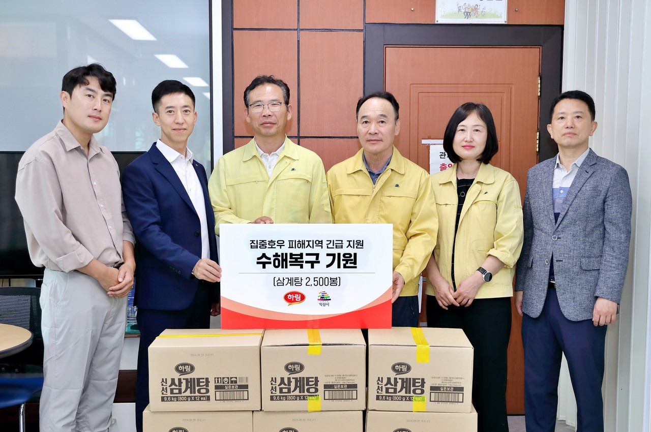 하림이 최근 발생한 집중호우로 침수 피해를 입은 익산 지역 주민들에게 삼계탕 2500개를 전달했다고 21일 밝혔다.