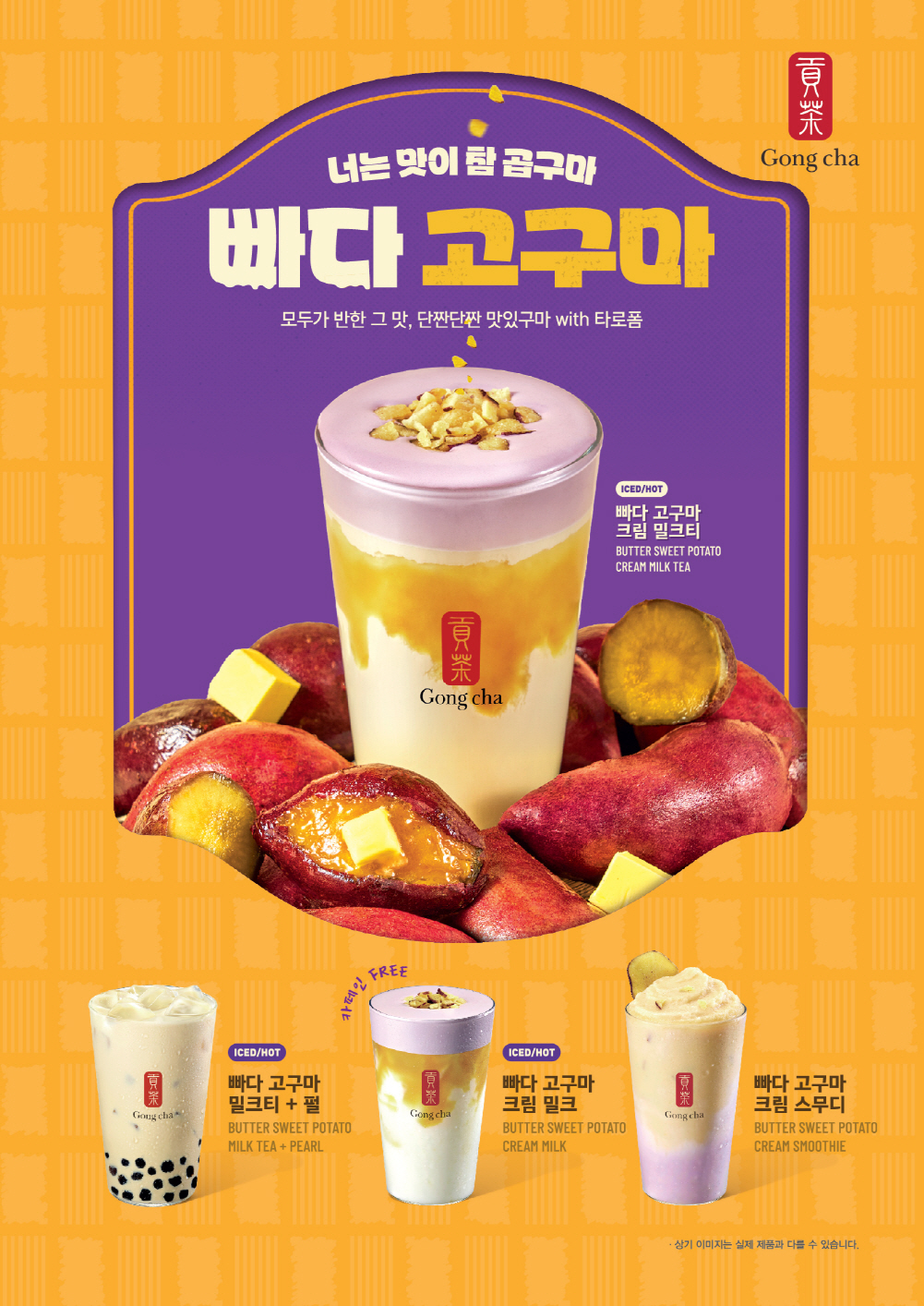 공차코리아는 가을 제철 고구마를 활용한 '빠다 고구마 4종'을 선보였다. 고구마에 소금과 버터 풍미를 더해 MZ세대의 '할매니얼' 입맛을 겨냥했다.