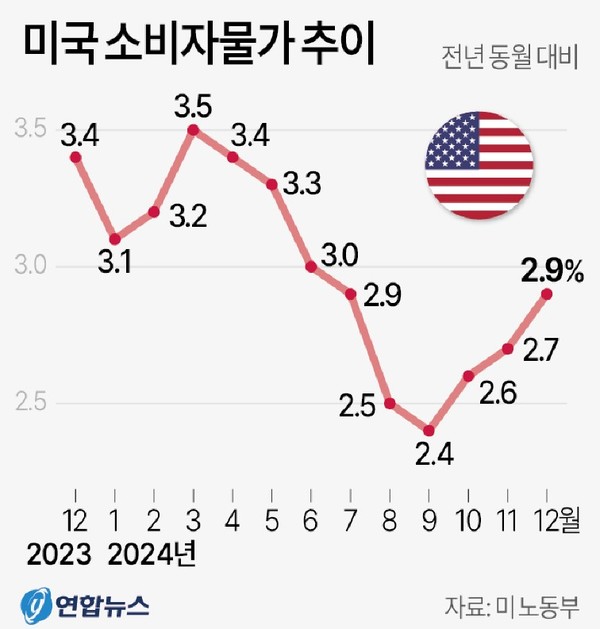 미 노동부는 이날 지난해 12월 소비자물가지수(CPI)가 전월 대비 0.4% 상승한 것으로 집계됐다고 발표했다. 시장 예상치와 지난해 11월 0.3% 상승을 모두 웃도는 수치다.